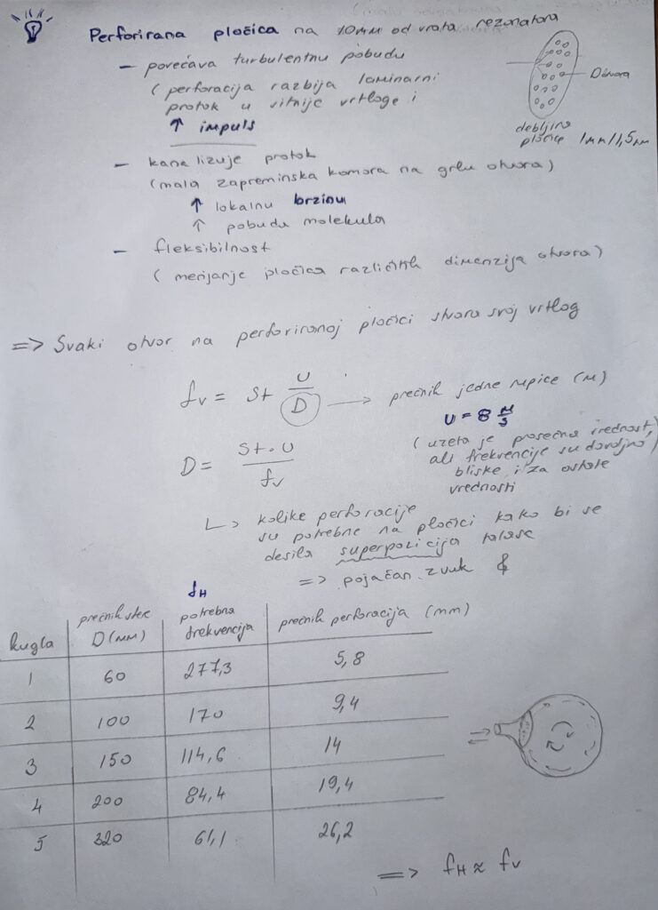 Upoređivanjem proračunatih i prirodnih frekvencija određeni su parametri najpogodniji za akustičko delovanje