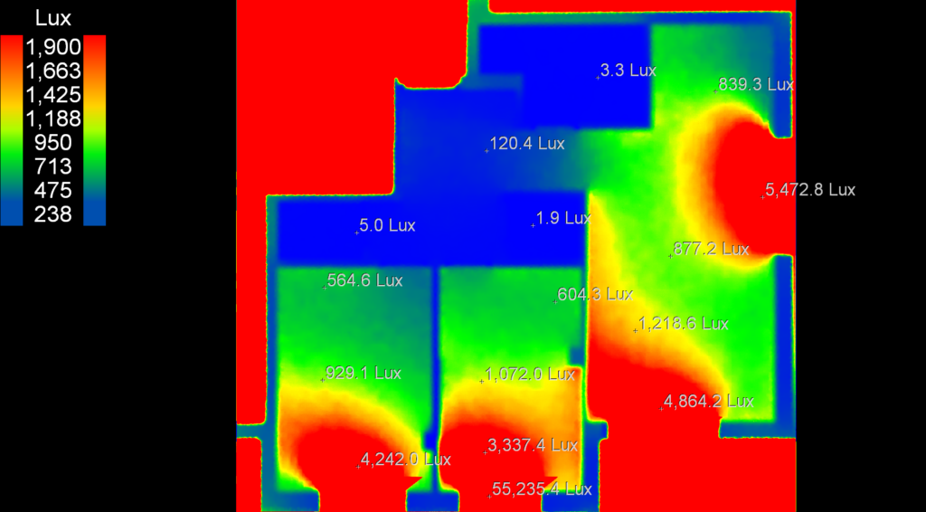Korišćenjem programa Velux Daylight visualiser izvršena je analiza upada prirodne svetlosti u stan, rezultati su relativno dobri sa odredjenim kritičnim tačkama u pojedinim stanovima. Kako je navedeno u hipotezi otvori su povećani za 40 cm u ka koti parketa kako bi se dodao jedan fiksni portal ispod pokretnog prozora. Kao i predpostavljeno osvetljenost je bolja kao i u delovima stana gde postoji lodja u erkeru odnosno gde je erker iznad stana smaknut.