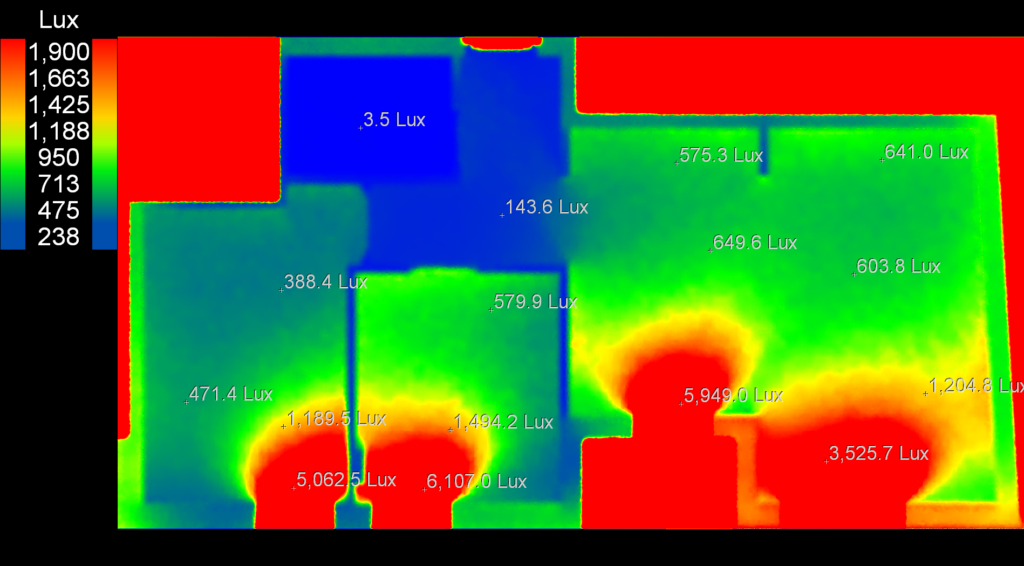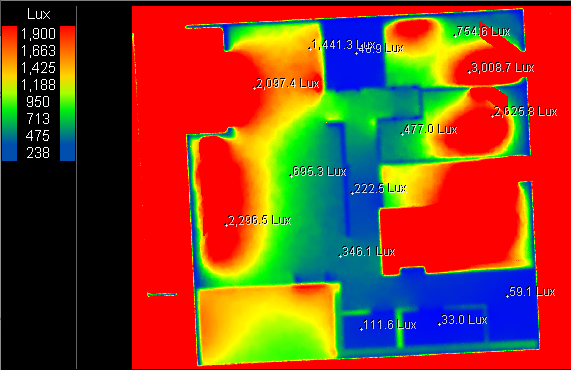 Analizom stana 14 uvidjamo lošiju osvetljenost dubljih delova stana a pogotovo komunikacija i pomoćnih prostorija, osvetljenost u dnevnom boravku od 1600 luxa je dosta manja od očekivanog.