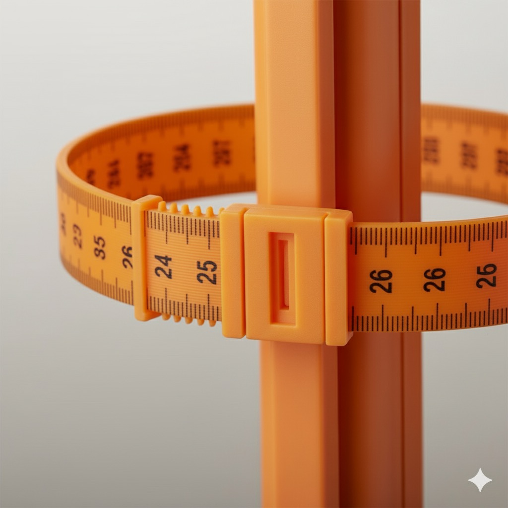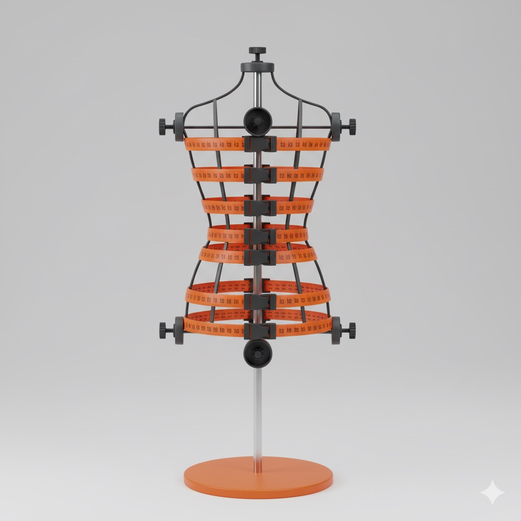 Idealno rešenje za podesivu lutku je konstrukcija gde svaki horizontalni element funkcioniše po principu kaiša. Sastoji se od kopče i zubaca čime se lako menja obim lutke. Takođe, po obimu kaiša odštampane su merne oznake koje dodatno olakšavaju posao.