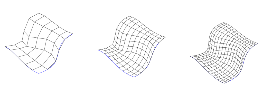 Primenom Rhno I grasshopper moguće je dobiti četvorougaone ravanske panele, čije su dimenzije stranica različite, ali koji će verno pratiti dvostruko zakrivljenu formu. Što je veći broj panela dvostrukozakrivljena površ je vernije ispraćena.