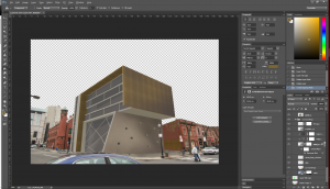 Druga metoda, koju ću ja pokazati, jeste da se objekat ubaci u već postojeću urbanu celinu. Prvo je potrebno izabrati fotografiju. Fotografija treba da bude velike rezolucije (olakšaće dalji rad), ciljana pozicija treba da bude kompozicijski fokusirana. Vizuelne prepreke poput drveća, bandera i sl, ukoliko nisu prevelike i ne narušavaju pogled, ne smetaju. Zapravo mogu da doprinesu samom kvalitetu rada. Ukoliko već postoji objekat na mestu gde želimo da postavimo naš, potrebno je prvo da ga uklonimo.