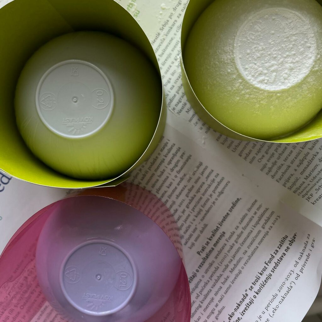 Istraživanje sam vršila na tri kalupa koja sam napravila od papira, folije i plastičnih činijica. Jednu činijicu sam premazala uljem, jednu bebi puderom i jednu sam stavila u foliju. Na njih sam sipala otpoljeni vosak koji je prilikom sipanja bio u tečnom stanju. Iz kalupa sam uspela da izvadim sva tri modela, međutim zaključak do kojeg sam došla jeste da se najlakše izvadio vosak koji je bio u kalupu prekriven folijom. Tako da će se u nastavku istraživanja koristiti folija.