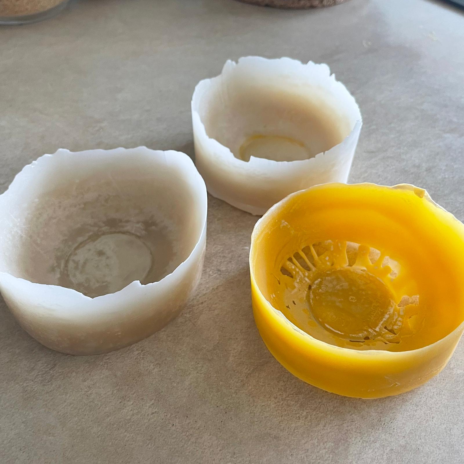 Istraživanje sam vršila na tri kalupa koja sam napravila od papira, folije i plastičnih činijica. Jednu činijicu sam premazala uljem, jednu bebi puderom i jednu sam stavila u foliju. Na njih sam sipala otpoljeni vosak koji je prilikom sipanja bio u tečnom stanju. Iz kalupa sam uspela da izvadim sva tri modela, međutim zaključak do kojeg sam došla jeste da se najlakše izvadio vosak koji je bio u kalupu prekriven folijom. Tako da će se u nastavku istraživanja koristiti folija.
