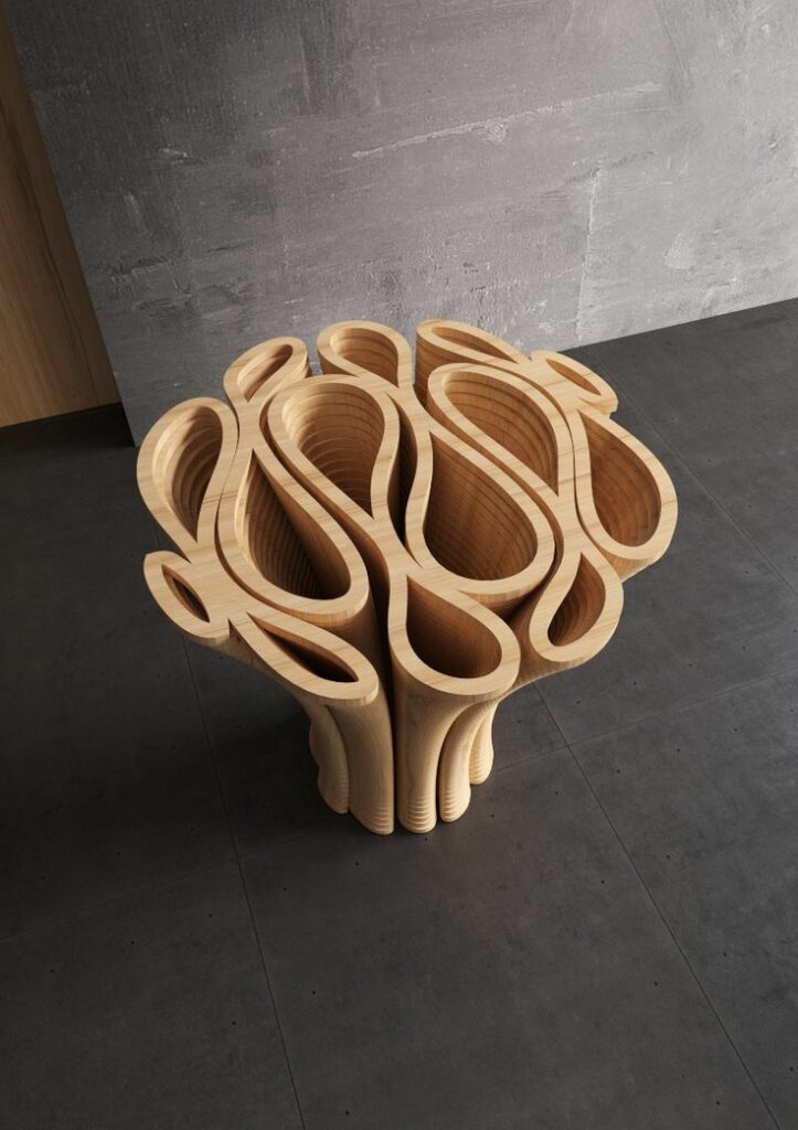 Vaza je oblikovana u Grasshopperu, pri čemu je za generisanje ovakve strukture prvenstveno korišćen Kangaroo alat, zasnovan na principima formiranja mrežnih struktura kroz simulaciju fizičkih sila.