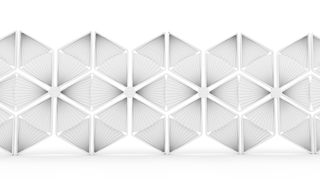 Nakon svih testiranja i digitalnog modelovanja u Grasshopperu, najefikasnije rešenje pokazalo se kao postavljanje membrana jedna ispod druge. Ova konfiguracija omogućava da se paneli vizuelno preklapaju, što značajno smanjuje otvore kroz koje svetlost prolazi, ali pri tom ne dolazi do fizičkog dodira između panela, što olakšava montažu i održava fleksibilnost sistema. Iterativnim testiranjem promenjeni su položaji i dimenzije lepeza kako bi se postiglo maksimalno preklapanje i optimalna kontrola svetlosti. Paneli su takođe dovoljno prilagodljivi za različite površine i prostorne situacije, a estetski efekat ostaje ujednačen i prijatan za oko.