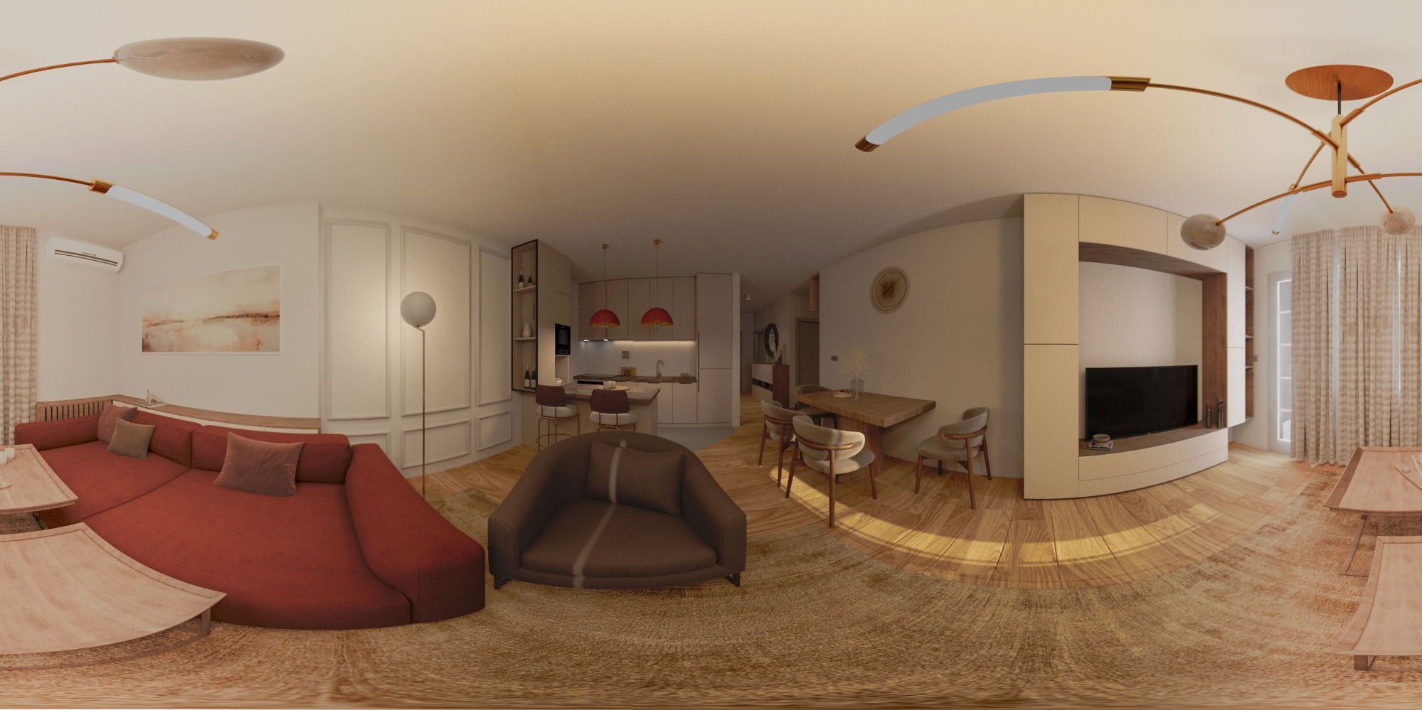 Rezultati: za prvi problem istraživanja nisu bili uspešni ni zadovoljavajućoi zbog nemogućnosti bolje dubinske percepcije prostora i parallax efekta, jer je tačka kamere odnosno korsnika u prostoru statična. Drugi problem je poprilično zadovoljavajuć jer je moguće implementiranje drugačijeg 360 rendera na platformu koju u jednoj slici prikazuje promenu svetla i osvetljenosti bez dodatnih poteza gledaoca.