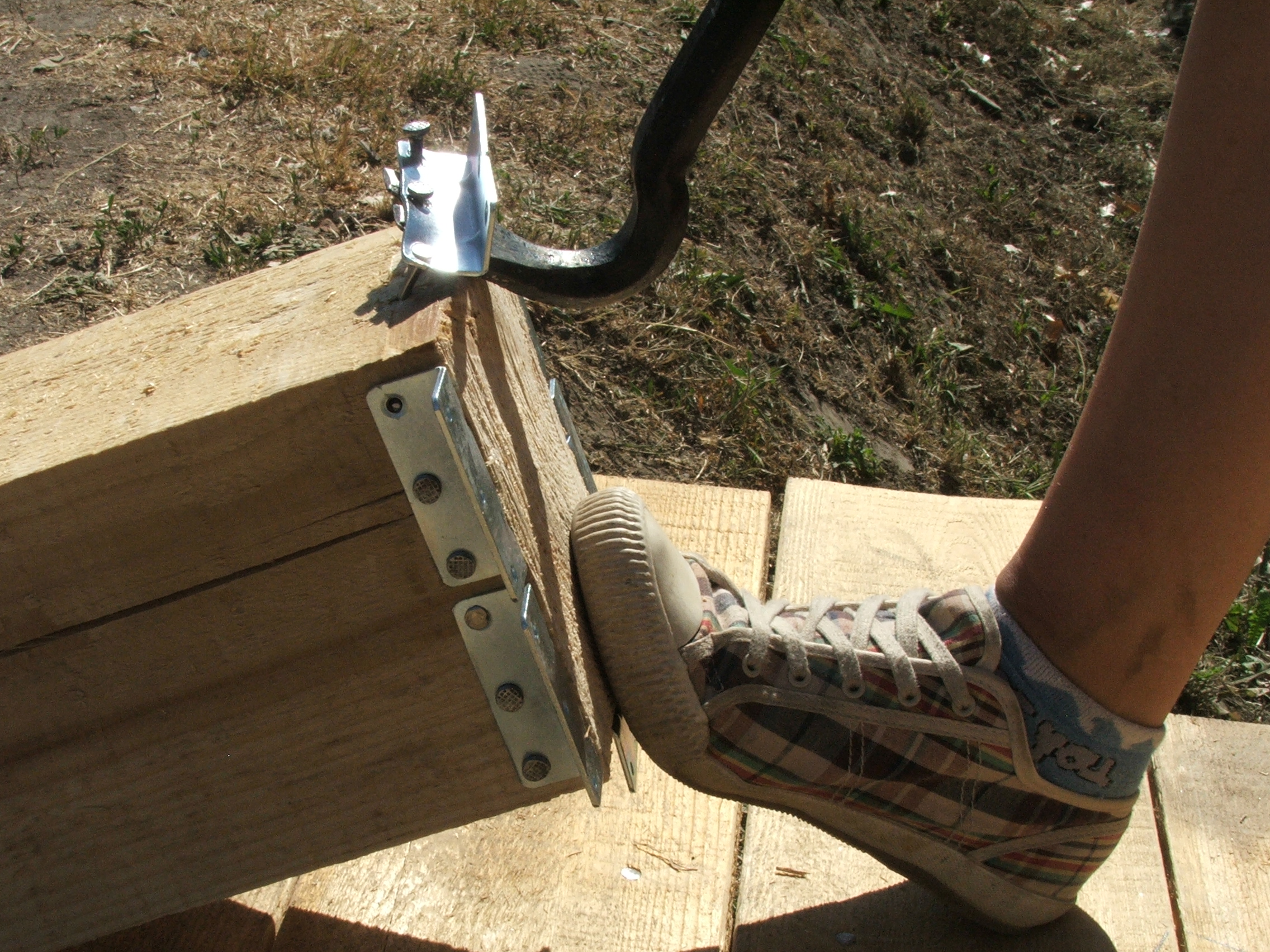 Počinje da liči na nešto… popločali smo daskama… završena gazeća površina… priprema za stubove… prvi stub… inspekcija… imamo bolju ideju… ko se tuče, taj se voli :) prvi rukohvat… već u funkciji… vidimo se sutra :)