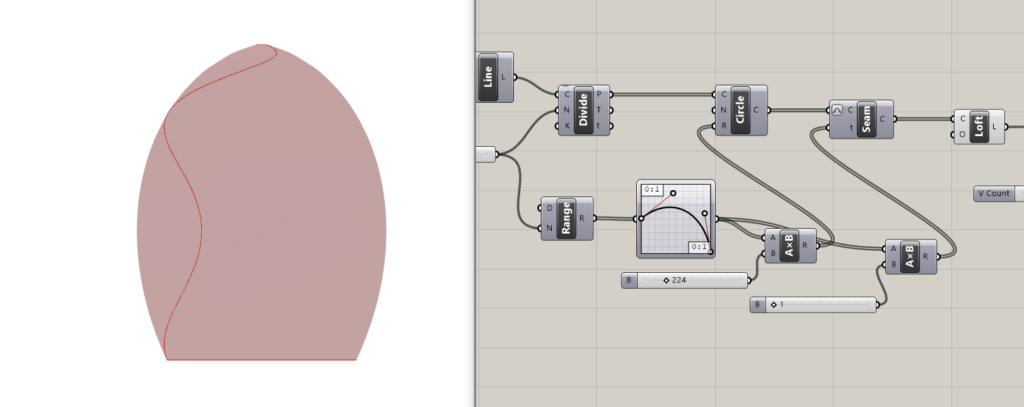 - izabran je profil koji je podeljen na tačke koje predstavljaju centre krugova – koji mogu da se kontrolišu pomoću Graph Mapper-a i Seam korišćeni za generisanje osnovne forme.