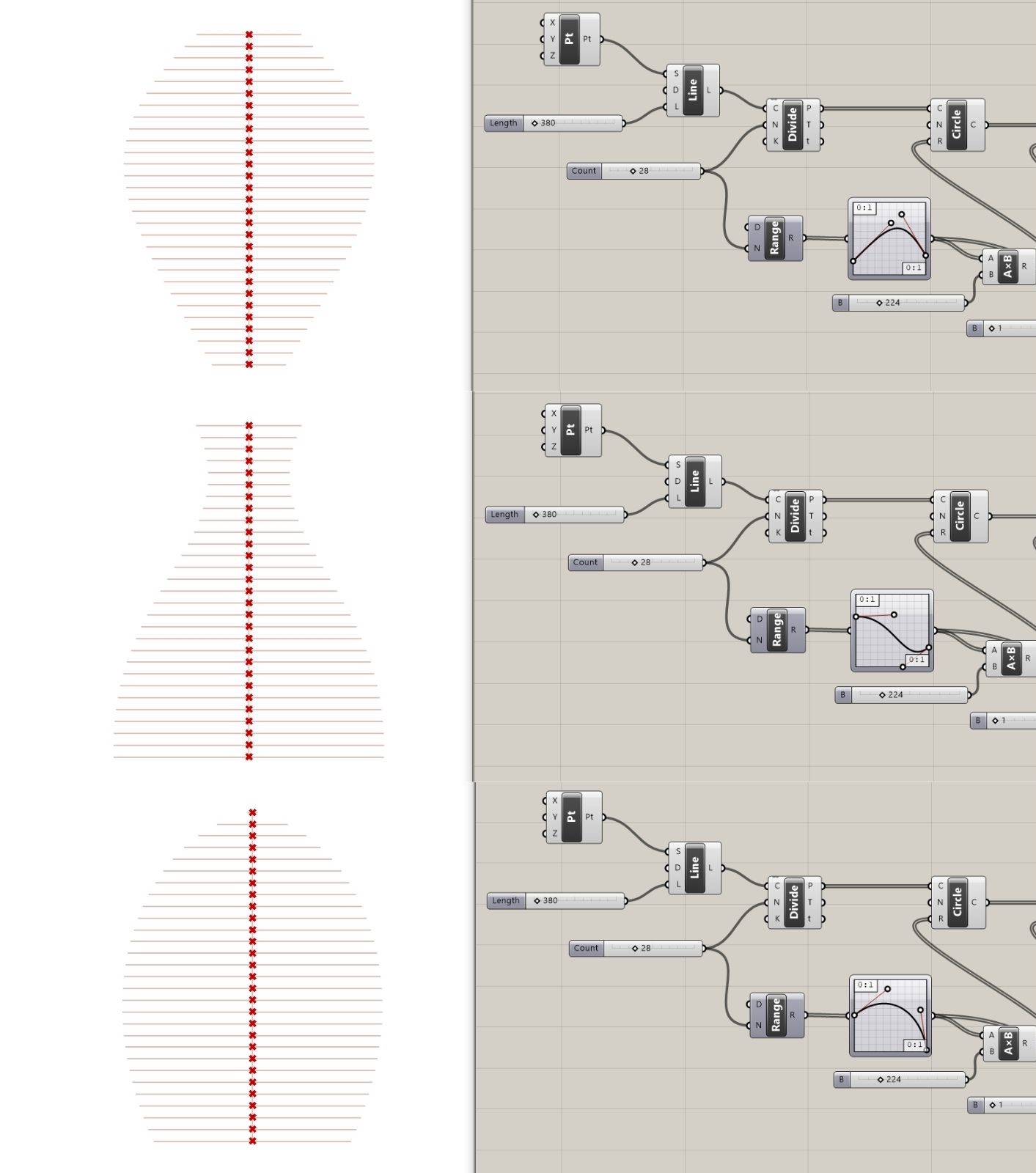 - izabran je profil koji je podeljen na tačke koje predstavljaju centre krugova – koji mogu da se kontrolišu pomoću Graph Mapper-a i Seam korišćeni za generisanje osnovne forme.