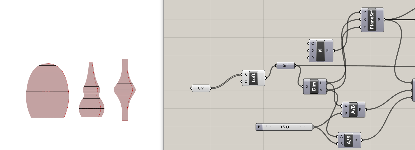 - korišćenjem krivih u Rhino-u i Loft-ovanjem u Gh-u od različitih rotacionih površi započet je ovaj metod modelovanja