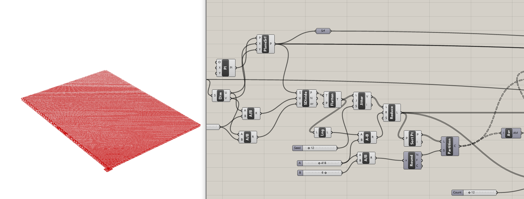 - ravan je zatim podeljena na ujednačenu mrežu tačaka koristeći Divide Surfac