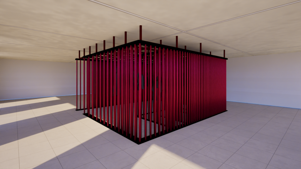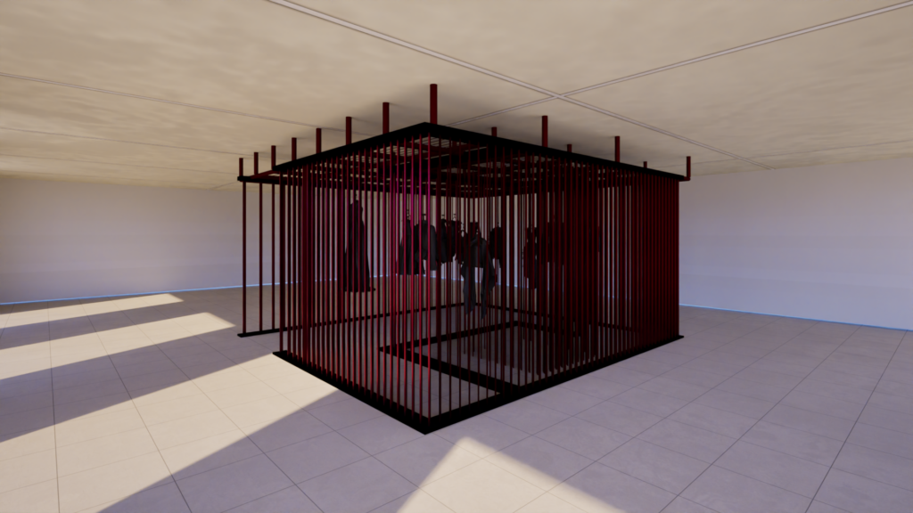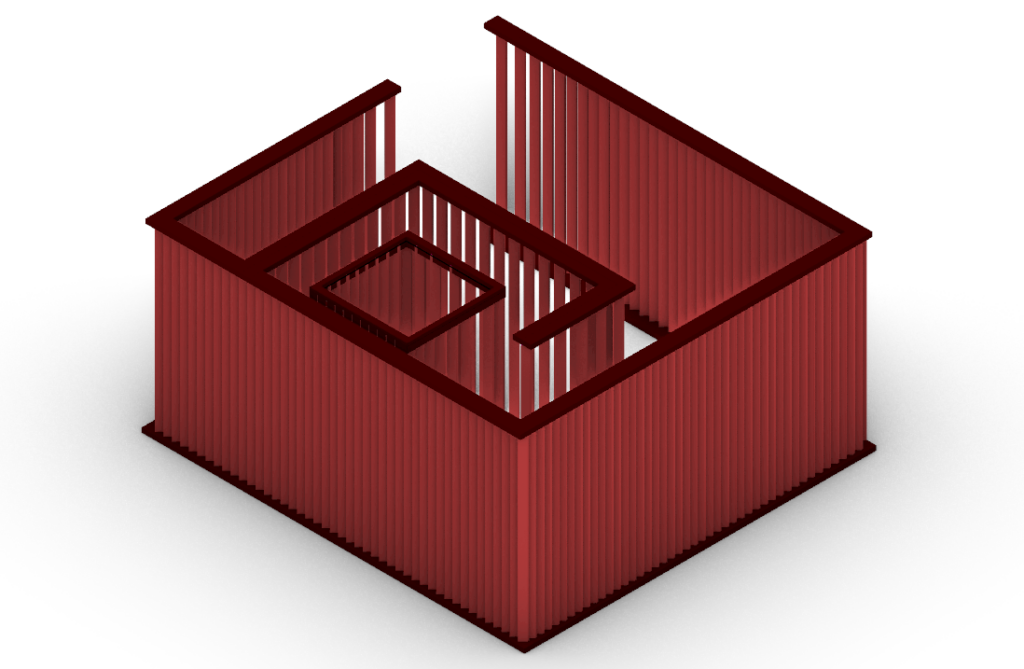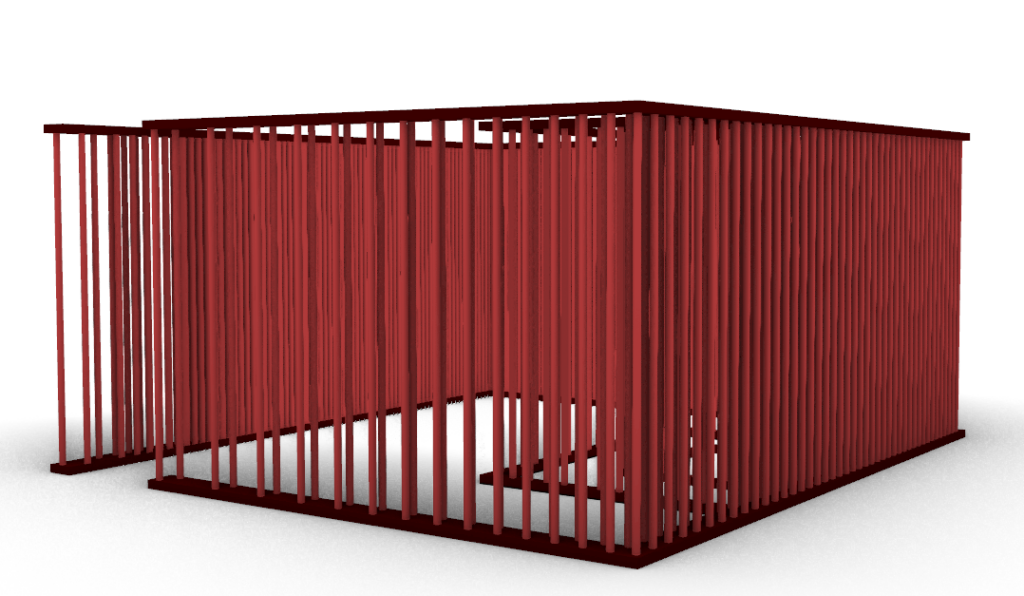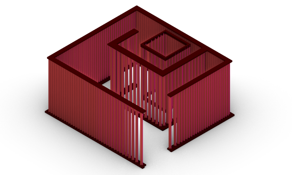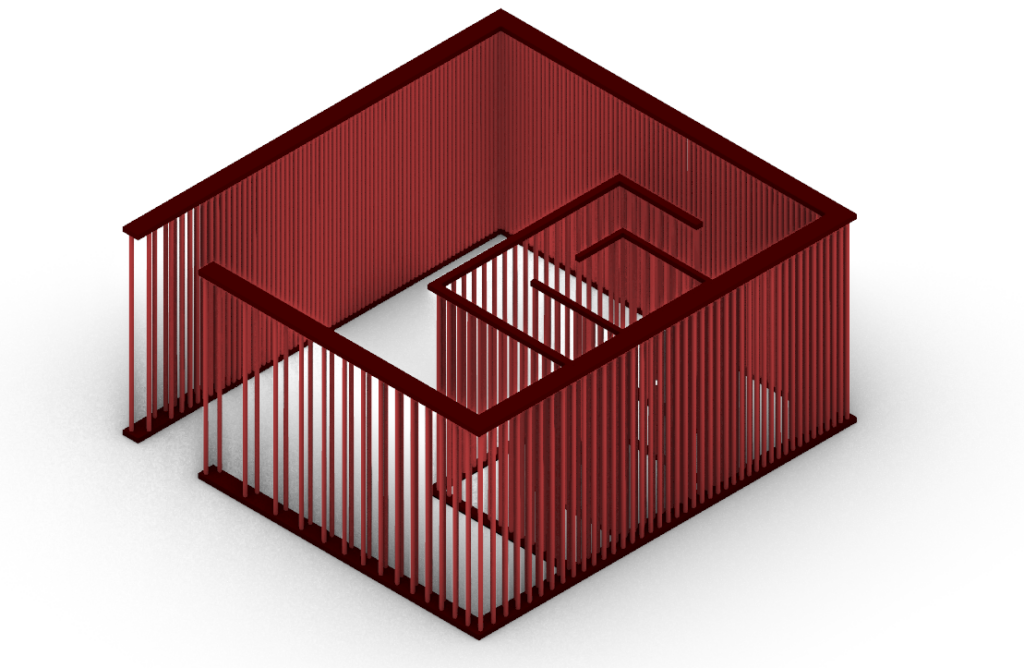 - Kanapi su postavljeni u dva reda, izmaknuti jedan red u odnosu na drugi red. Kanapi su raspoređeni u različitim gustinama, kako bi se stvorio ulaz i kako bi se stvorila različita vidljivost unutar prostora