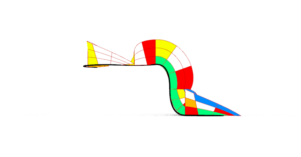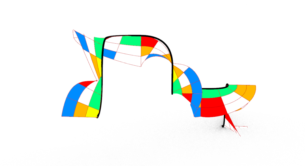 Da bi se formirala odgovarajuća slobodna forma, algoritam je izveden obrnuto na Rubikovoj kocki, kao što su i pravci kretenja obrnuto (D, U, R, L), polazeći od već složene kocke. Smerovi rotacije su takodje obrnuto radjeni za svaki korak pojedinačno (CCW, CCW, CW, CW). Na taj način bilo je moguće precizno pratiti redosled promena boja koje se javljaju tokom svakog poteza. Boje su zatim iskorišćene kao referenca za formiranje geometrijske strukture, čime je svaka promena na kocki dobila svoj vizuelni i prostorni ekvivalent. Rezultat ovog procesa je slobodna forma koja sledi logiku kretanja tačke u prostoru i odražava ritam algoritma.