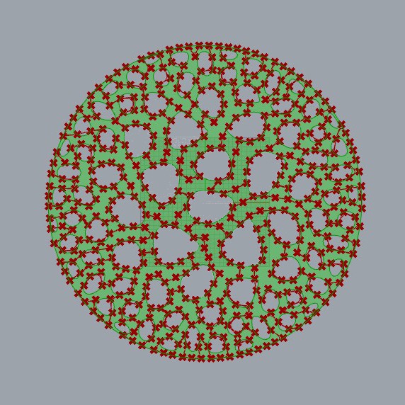 Način formiranja vaze: za bazu korišćena je kriva sa minimalnim brojem segmenata, na koju deluje najmanji intenzitet sila. Ovakav pristup stvara dno bez nepristupačnih delova, što znatno olakšava čišćenje. Broj segmenata, kao i intenzitet delovanja sila, postepeno se povećavaju u svakom narednom koraku, čime se formira kompleksna mrežasta struktura sve dok se ne postigne željeni stepen perforacije, pri čemu se na površini vaze formiraju karakteristične rupice.