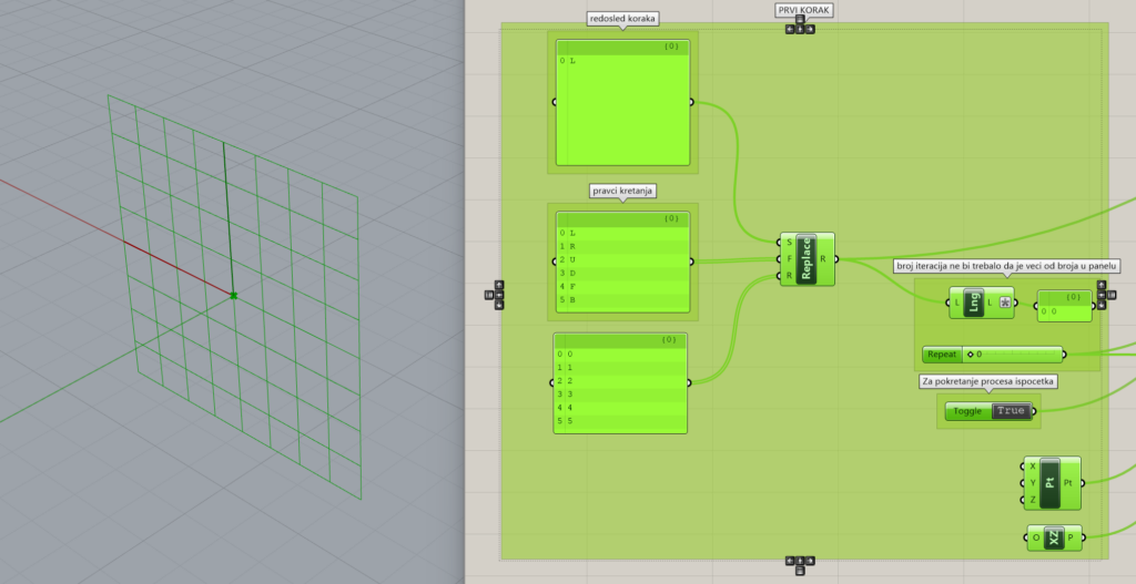 Metoda istraživanja definisana u ovoj fazi omogućila je uspostavljanje jasnog sistema prevođenja algoritma Rubikove kocke u prostorne, geometrijske forme. Kroz proučavanje pravaca kretanja, smera rotacije i sistema boja, postavljen je temelj za razumevanje kako se sekvenca poteza može vizuelno i prostorno artikulisati.