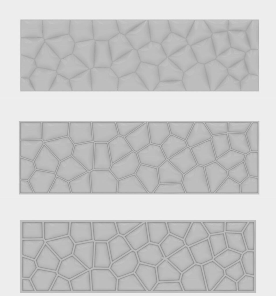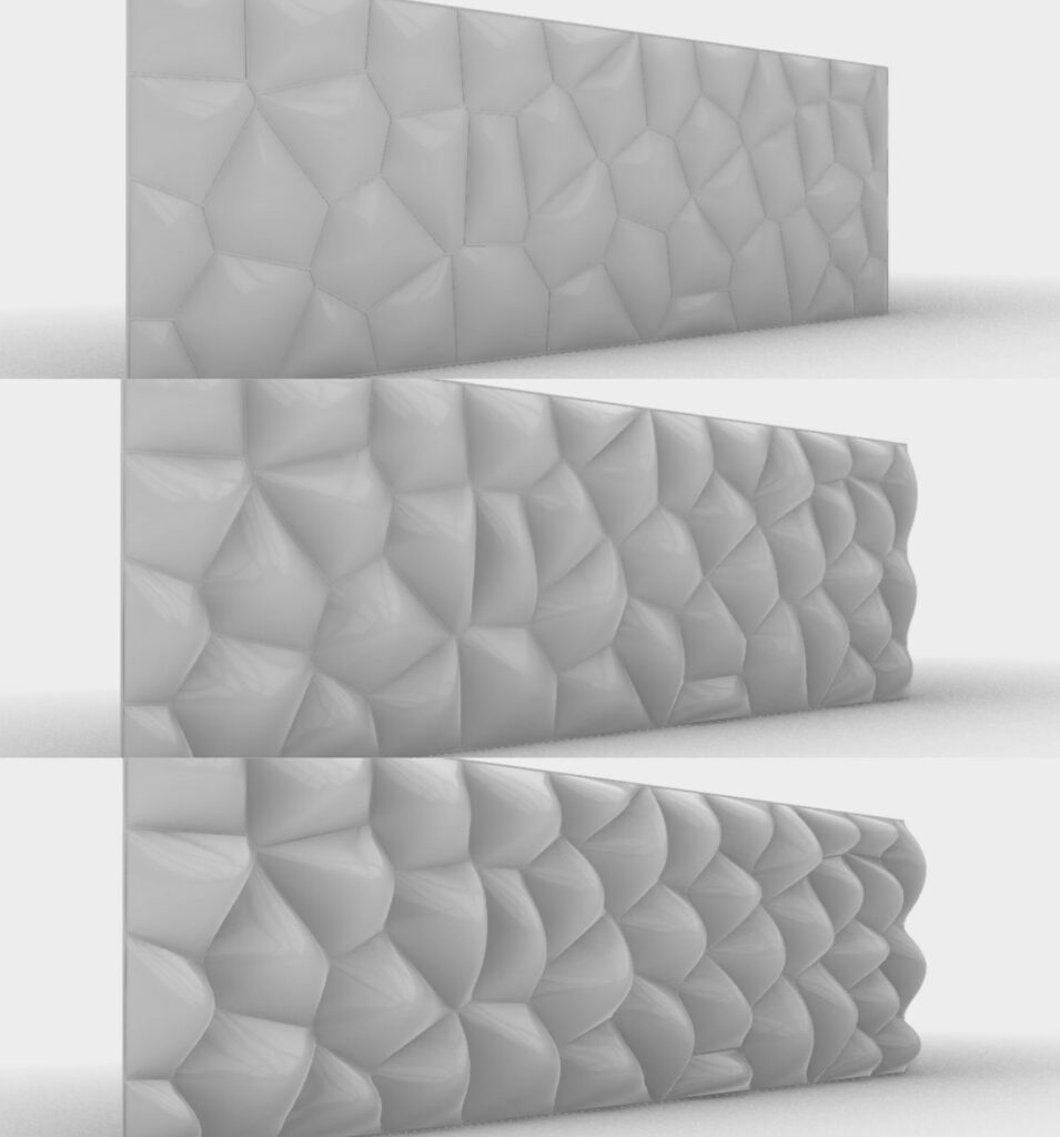 Variacijom gustoće tačaka, nepravilnosti i veličine ćelija jasno se vidi da je penasta logika izuzetno osetljiva na parametre. Male promene u rasporedu dovode do značajnih promena u percepciji svetla, senke i prostornosti fasade.