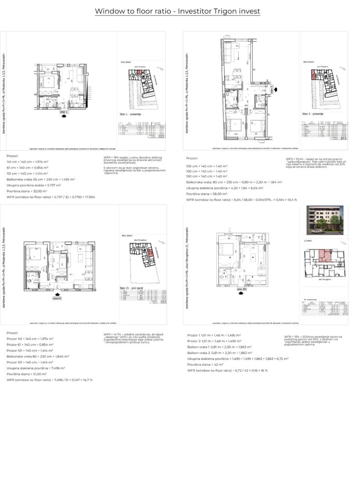 Dobra osvetljenost koja se proračunava WFR metodom iznosi 20%. Sprovedenim računom dolazimo do zaključaka da su jednoiposobni i dvosobni stanovi korektno osvetljeni i da se problemi sa osvetljenjem susreću u stanovima veće kvadrature kao i dvostrano orijentisanim stanovima ( problemi u osvetljenosti središnjih delova stana ).